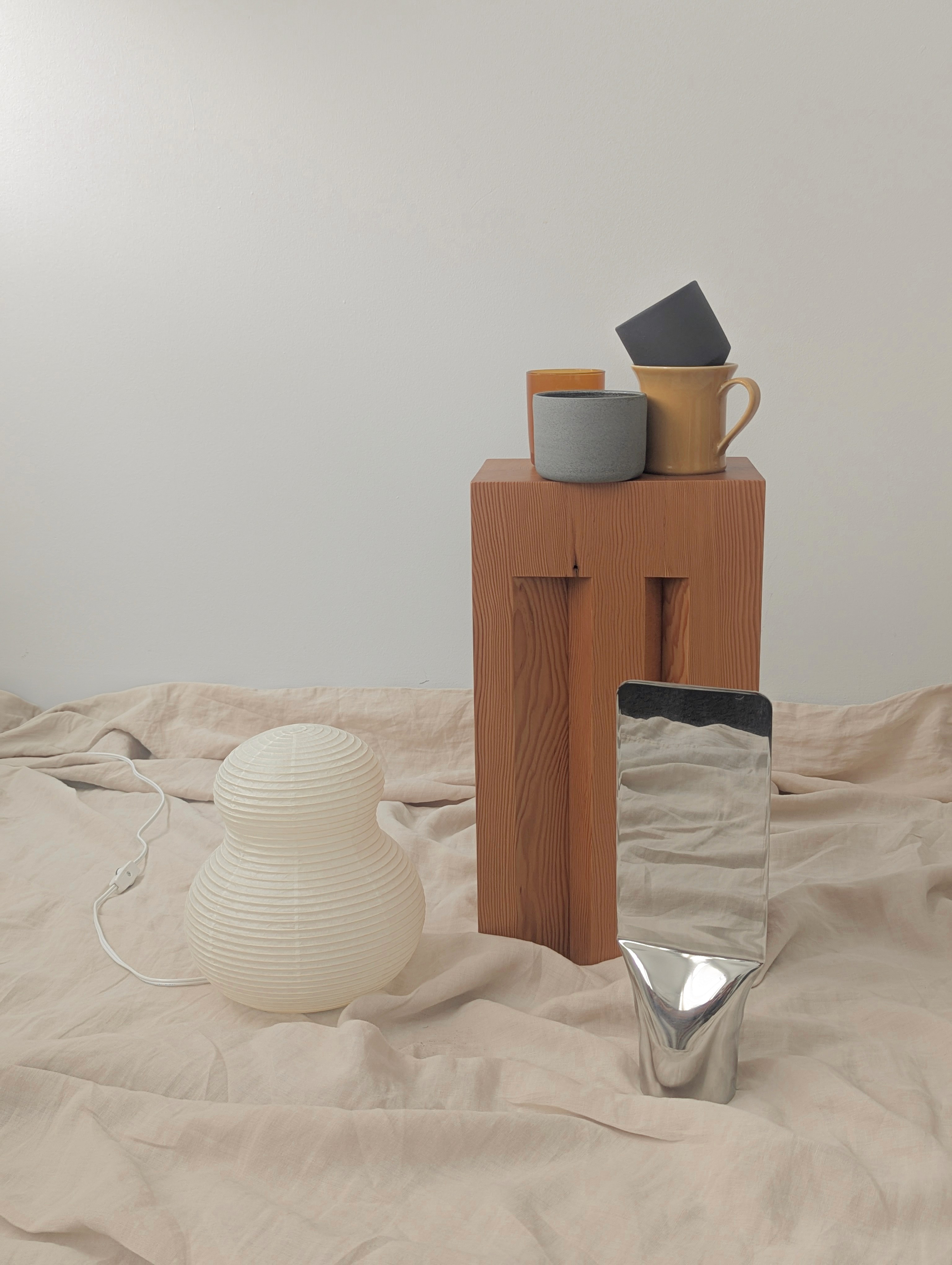 The sculptural form of the contained chamfers articulates the side tables, changing across each face, comfortably exposing the naturally strong and directional grain.
